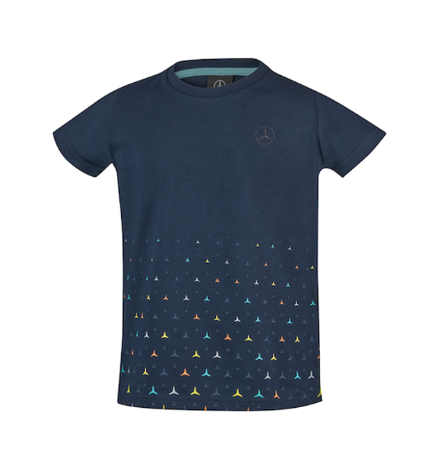 - - Haftowana gwiazda Mercedesa na piersi i kolorowy wzór gwiazdy z przodu i z tyłu.